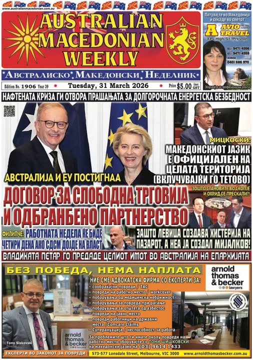 Australian Macedonian Weekly http://www.australianmacedonian.com.au/subscribe