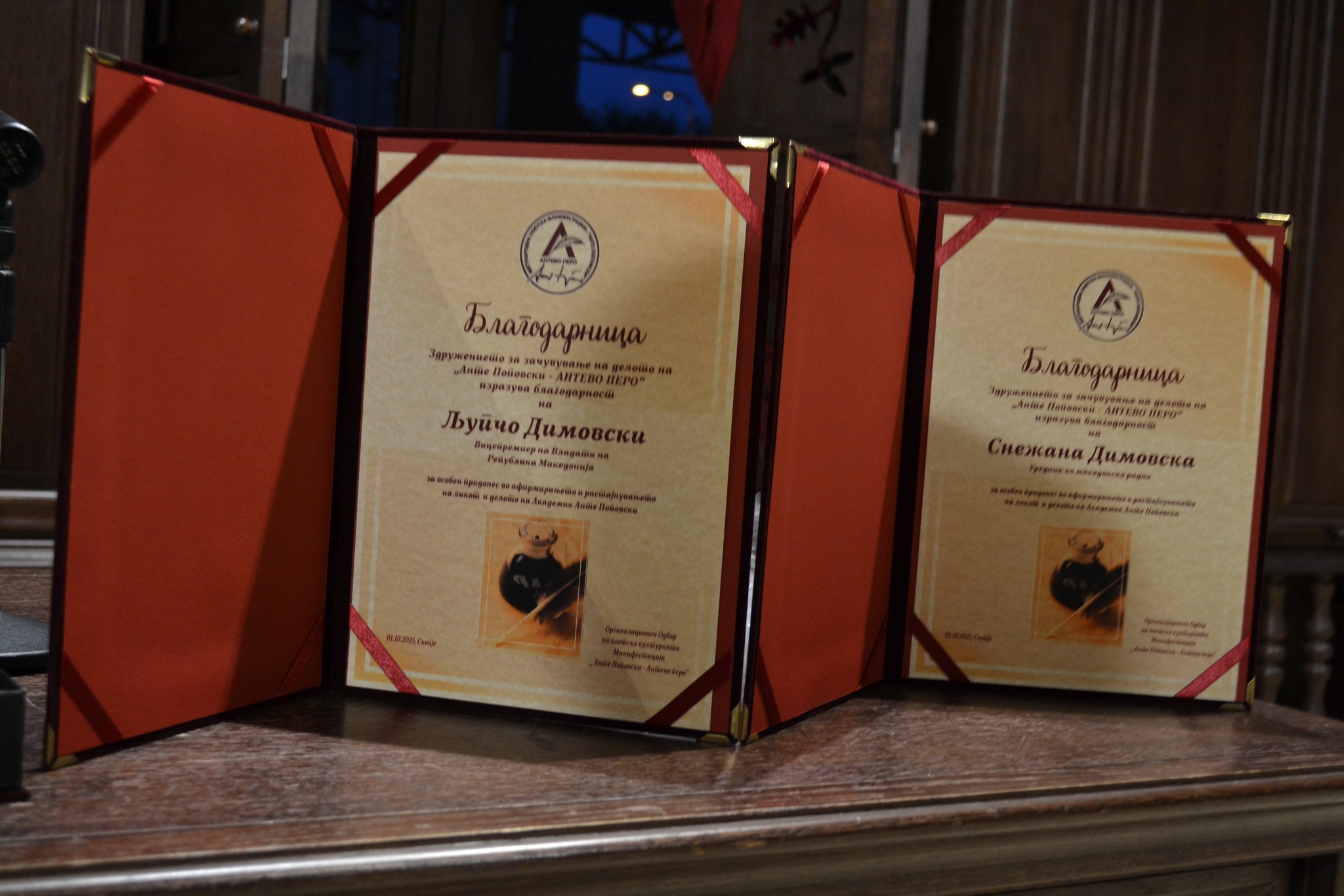 За посветеноста и поддршката на Манифестацијата, на Љупчо Димовски, Заменик претседател на Владата за политички систем и на Снежана Димовска од Македонското радио им беа доделени благодарници.