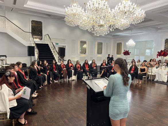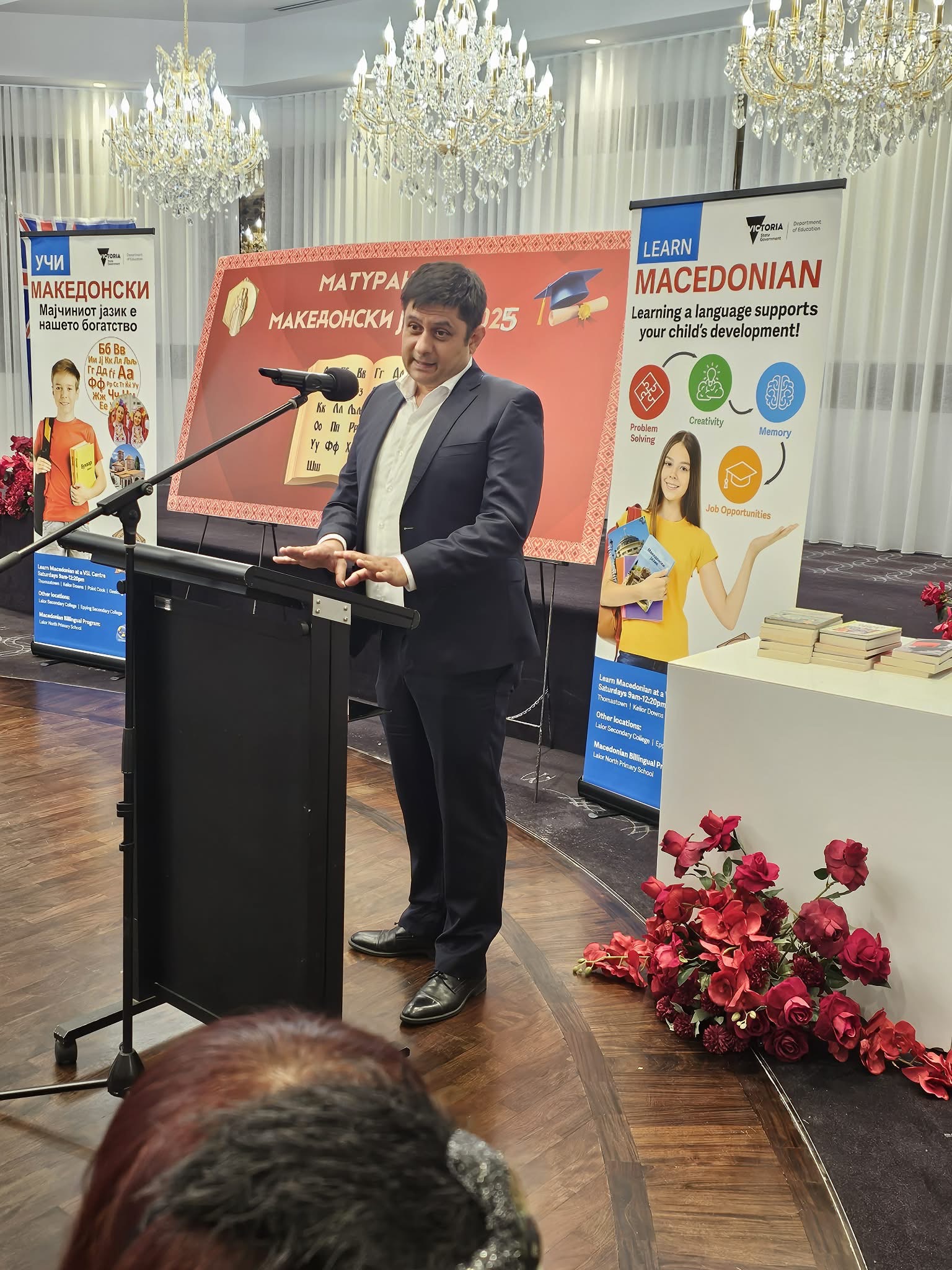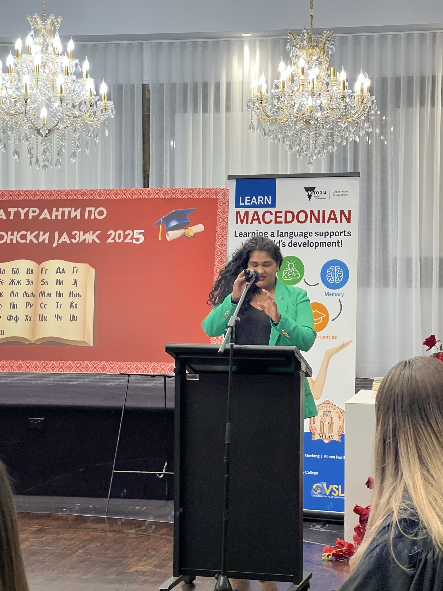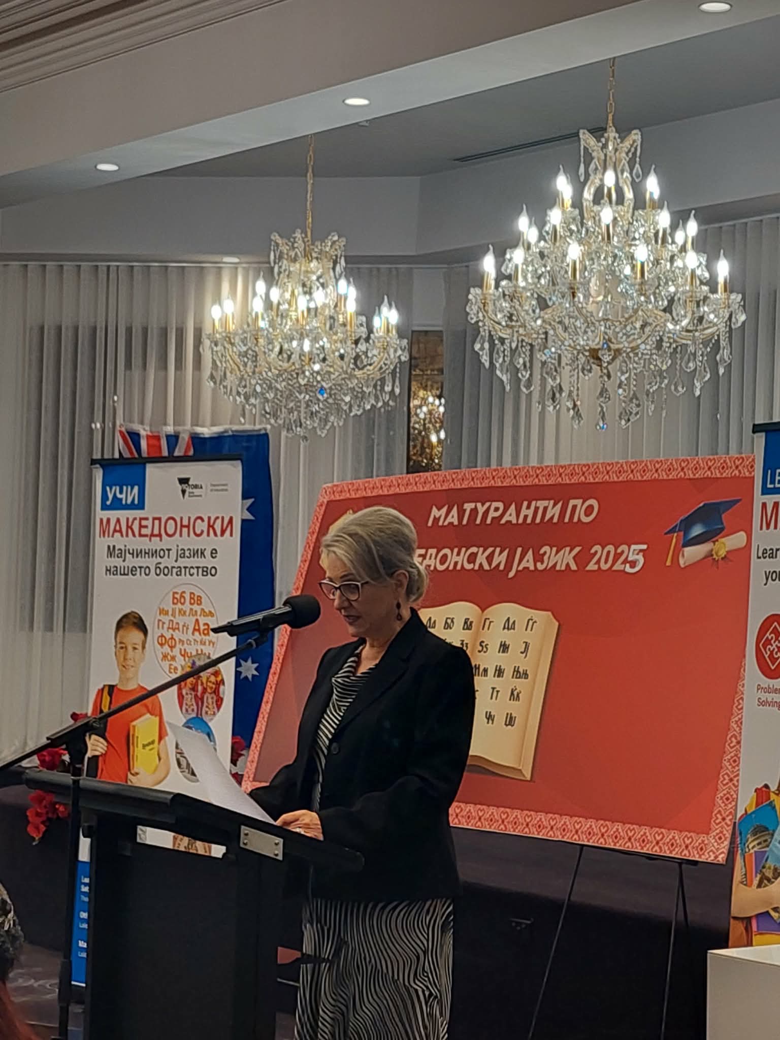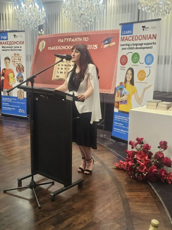 Највпечатлив момент од вечерта беше инспиративниот говор на претседателката на Македонското Учителско Друштво на Викторија, г-ѓа Јованка Смилевска, која истакна дека матурирањето по македонски јазик е повеќе од формалност – тоа е чин на идентитет, припадност и љубов кон корените.