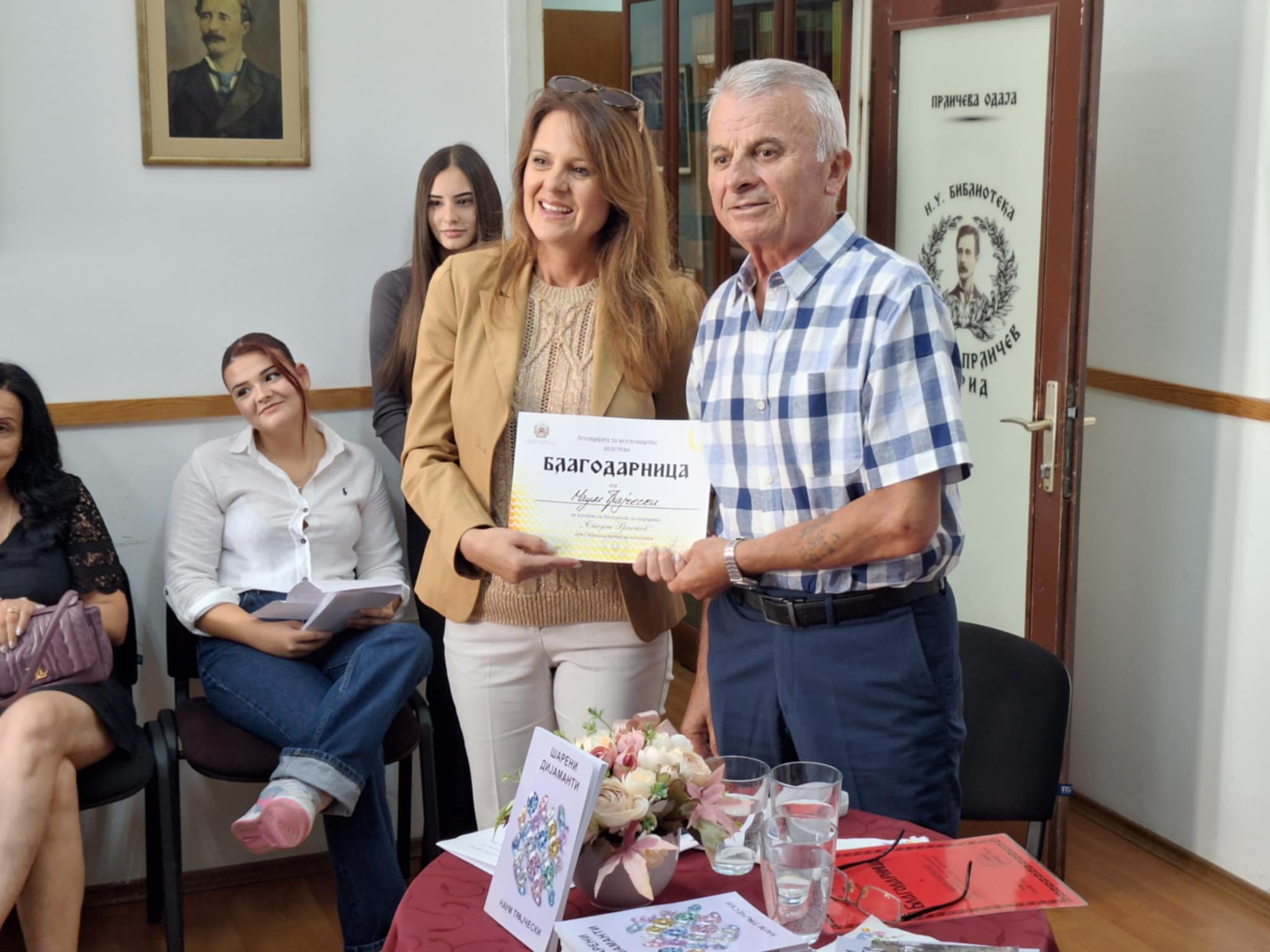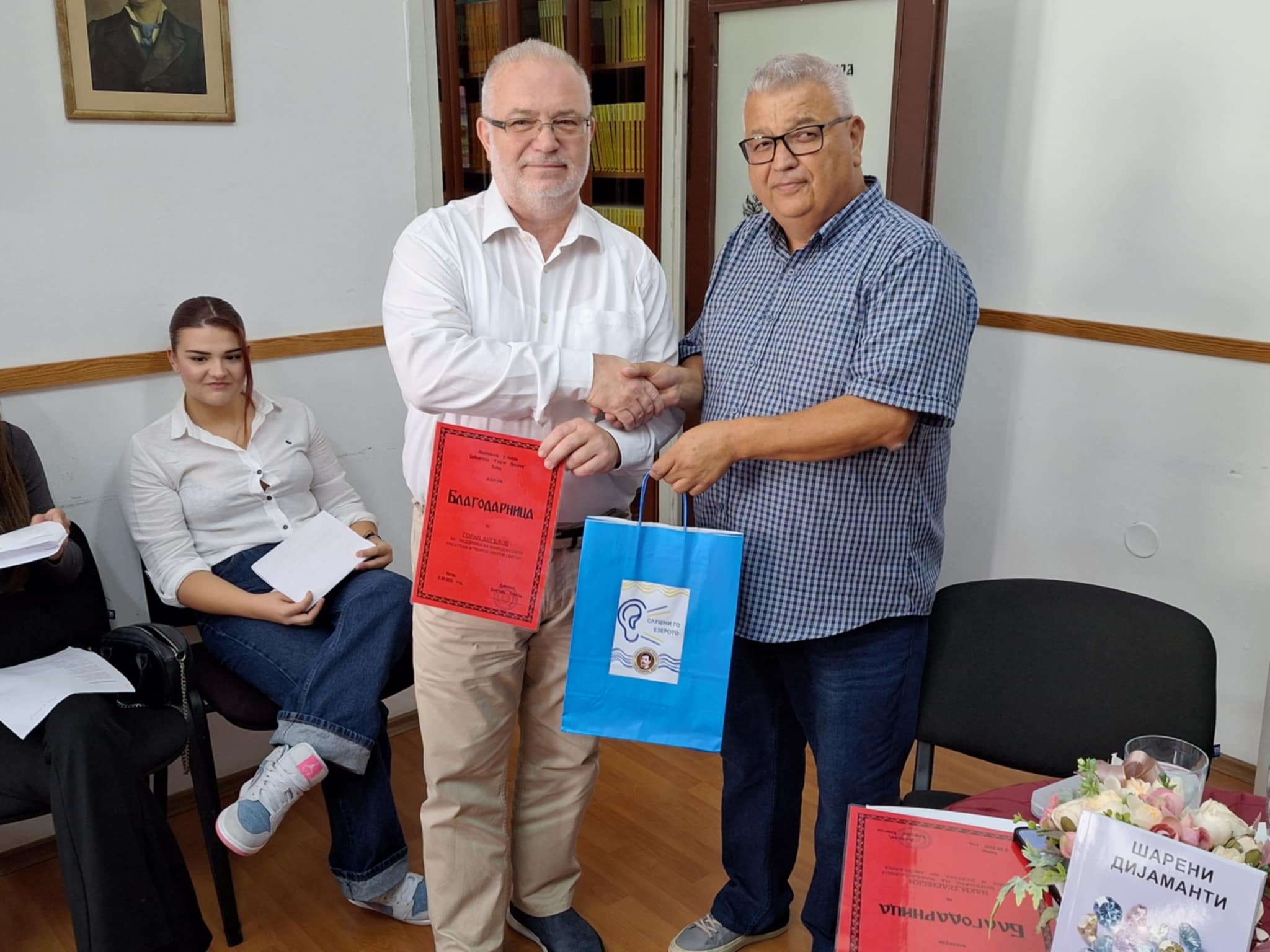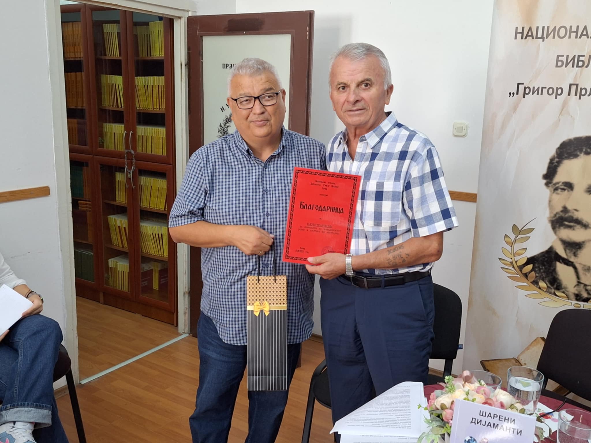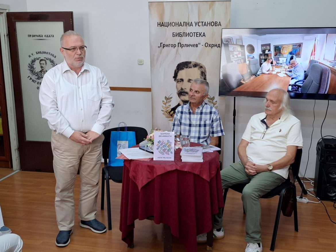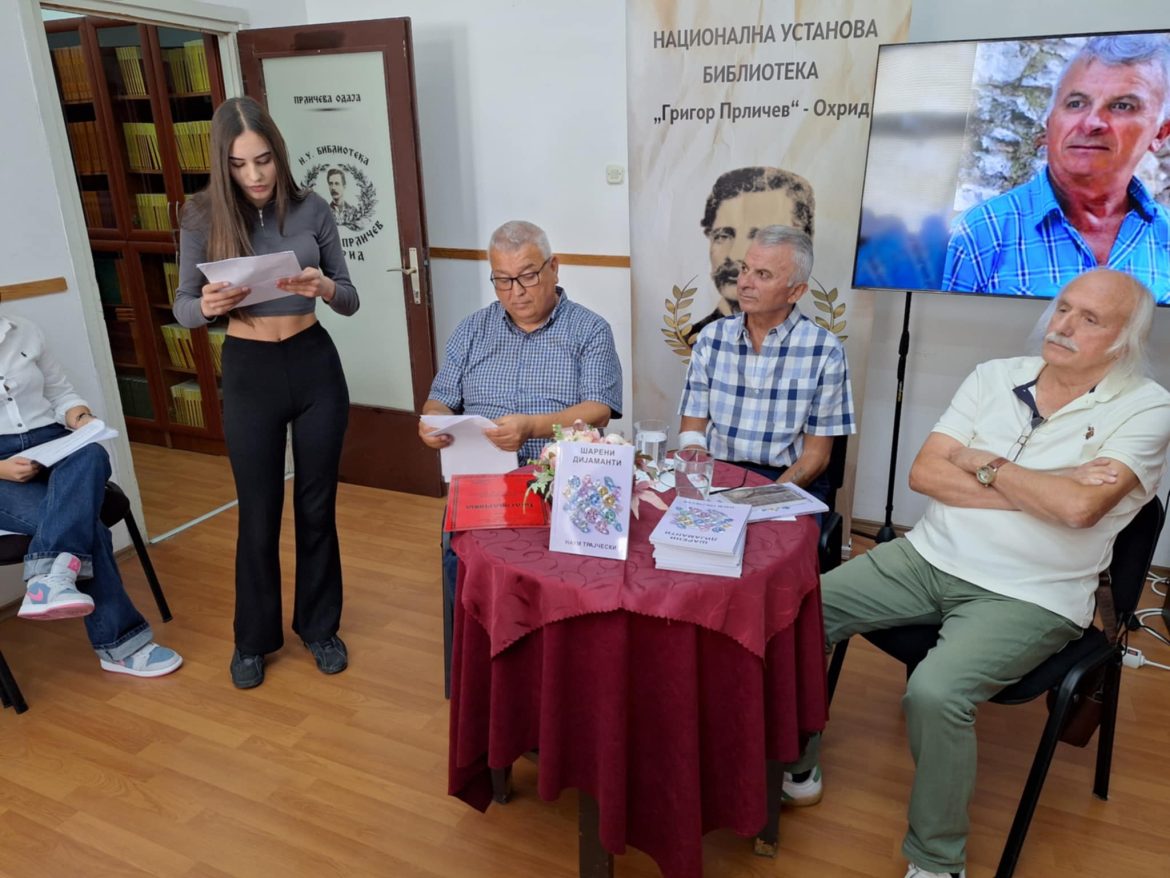 Од денешната промоција на стихозбирката ШАРЕНИ ДИЈАМАНТИ од роднокрајниот автор Наум Трајчески. Издавач на книгата е Агенцијата за иселеништво а на промоцијата присуствуваа директорт на агенцијата Горан Ангелов и Билјана Костова,раководител на секторот за унапредување и одржување на врските со иселениците.