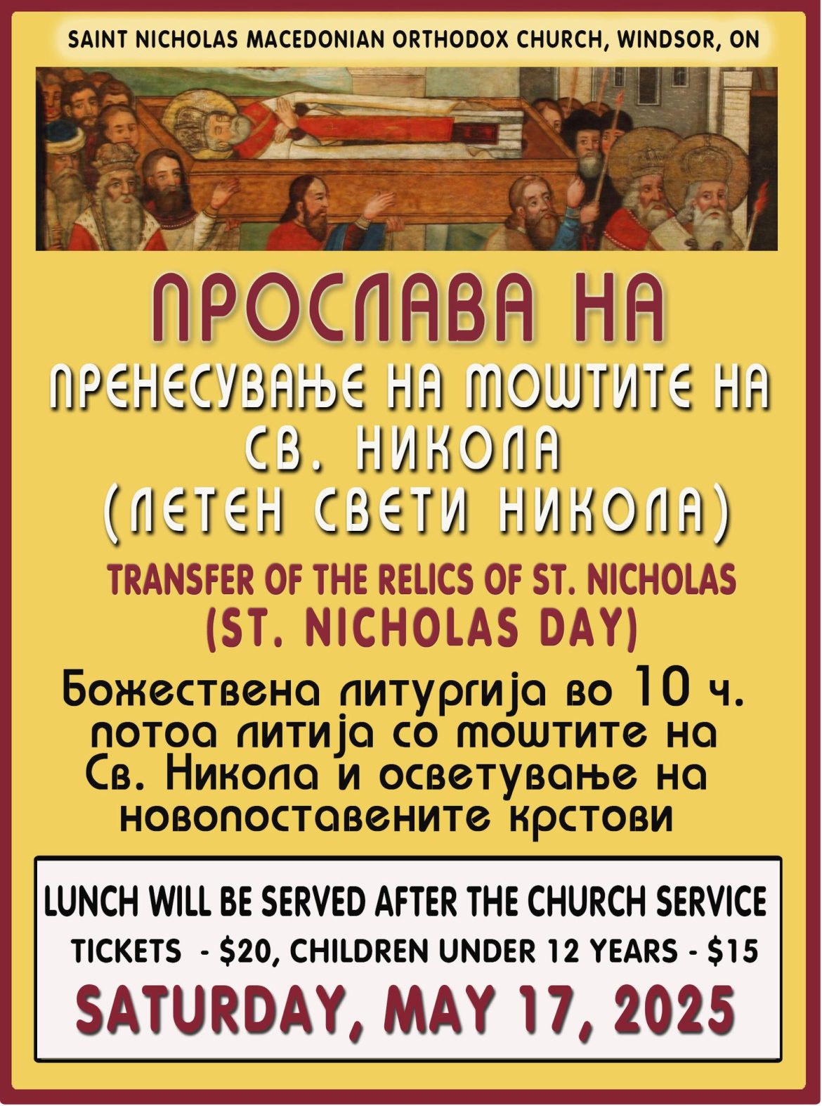 Прослава на пренесување на моштите на Свети Никола во МПЦ „Свети Никола“ во Виндзор