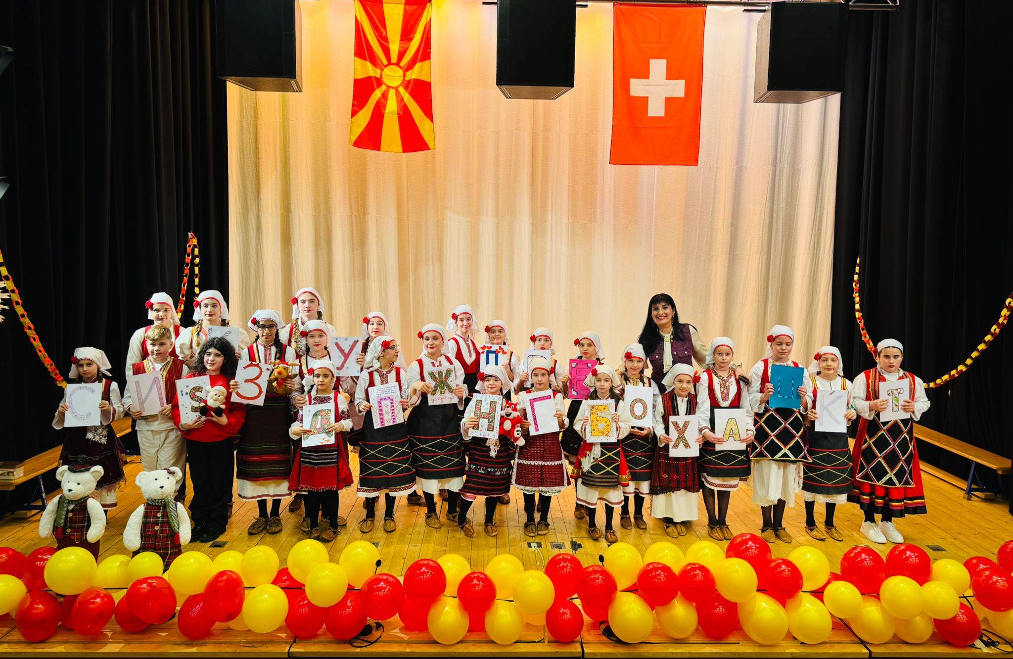 д-р Стефано Џиларди, градоначалникот на Локарно Никола Пини и свештеникот отец Драги Гоцевски. На крајот од програмата отец Драги на сите ученици им додели новогодишни пакетчиња.