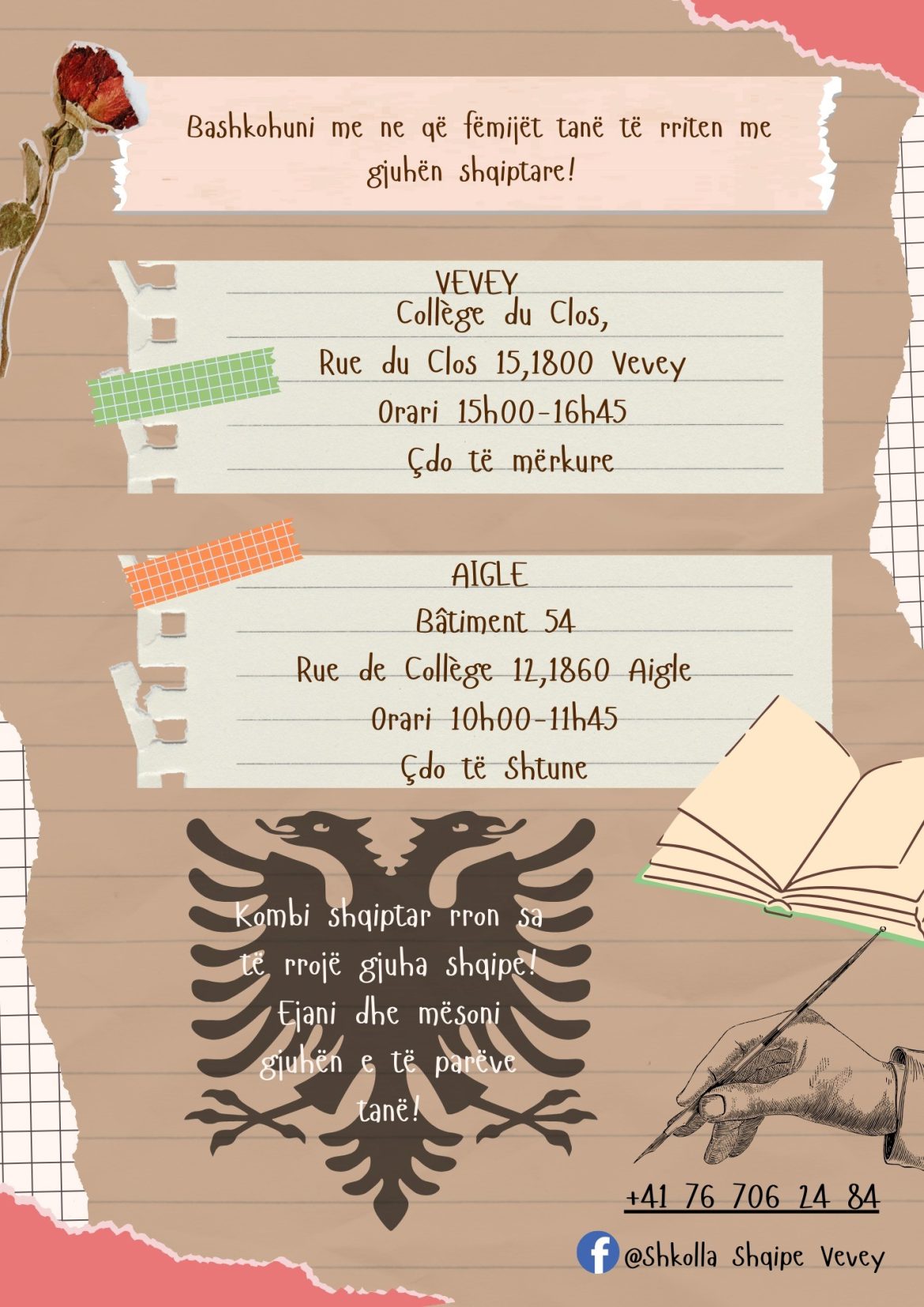 Me gëzim ju njoftojmë se Shkolla Shqipe në Vevey dhe Aigle po hap dyert përsëri për fillimin e vitit të ri shkollor 2025/2026.
