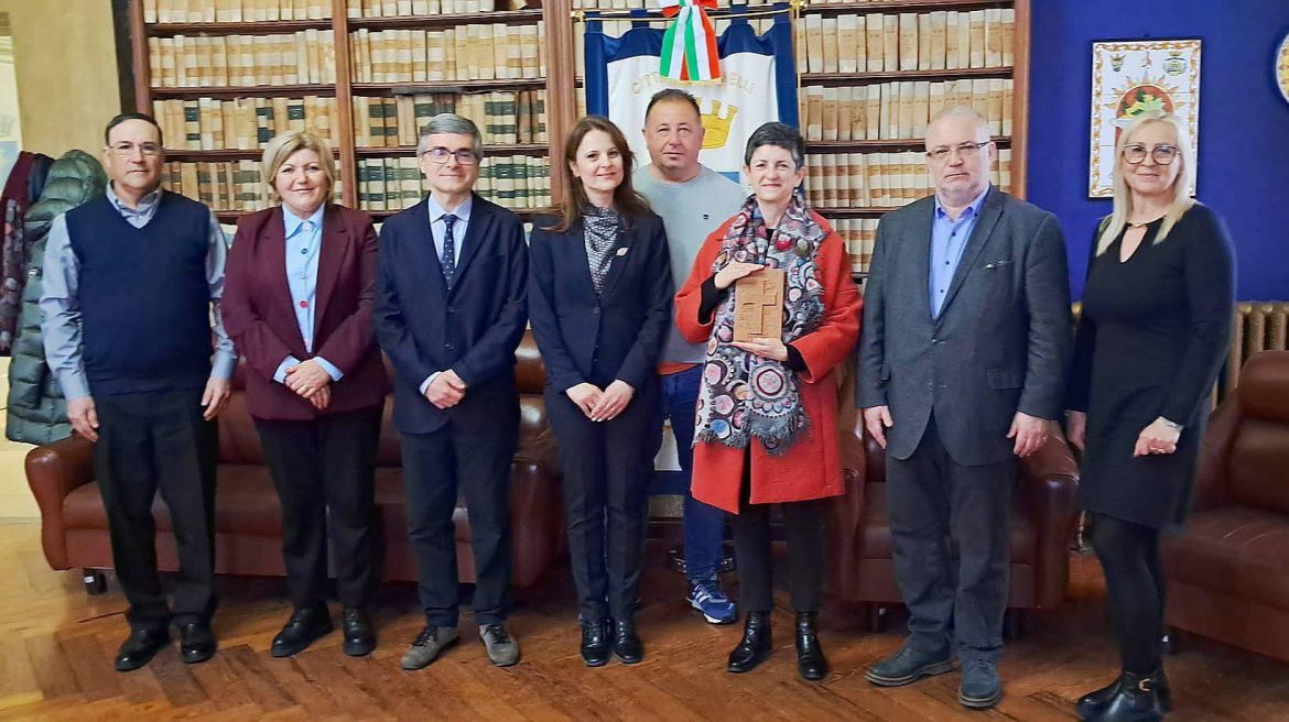 Në organizimin e shoqatës “Ura e Gurit” (II Ponte di Pietra) delegacioni realizuan takim tek kryetari i Komunës Kanell, Roberta Xhovine, zëvendës kryetari, Paolla Stripiana dhe këshilltari Paollo Gandolf. Gjatë takimit kryetari i komunës, Roberta Xhovine, shprehu falenderim ndaj popullit maqedonas i cili numron një të tretën të popullësisë në qytet, për rolin në zhvillimin ekonomik të qytetit, si dhe deri te Agjencia e Mërgatës për mbështetjen e shoqatës dhe vizitën e komunës. Me theks të veçantë shprehu kënaqësi nivelin e lartë në procesin e arsimit, me këtë paraqet edhe pasuri intelektuale në komunë. Në shenjë falenderimi për pranim të drejtorit Angellov në komunë, i dhuroi ikonë duke u sqaruar për kuptimin e sajë, ndërsa edhe nga ana e kryetarit të komunës Xhovine në shenjë të promovimit të verërisë e cila është degë kryesore në Piemonte, i dhuruam verë autentike.
